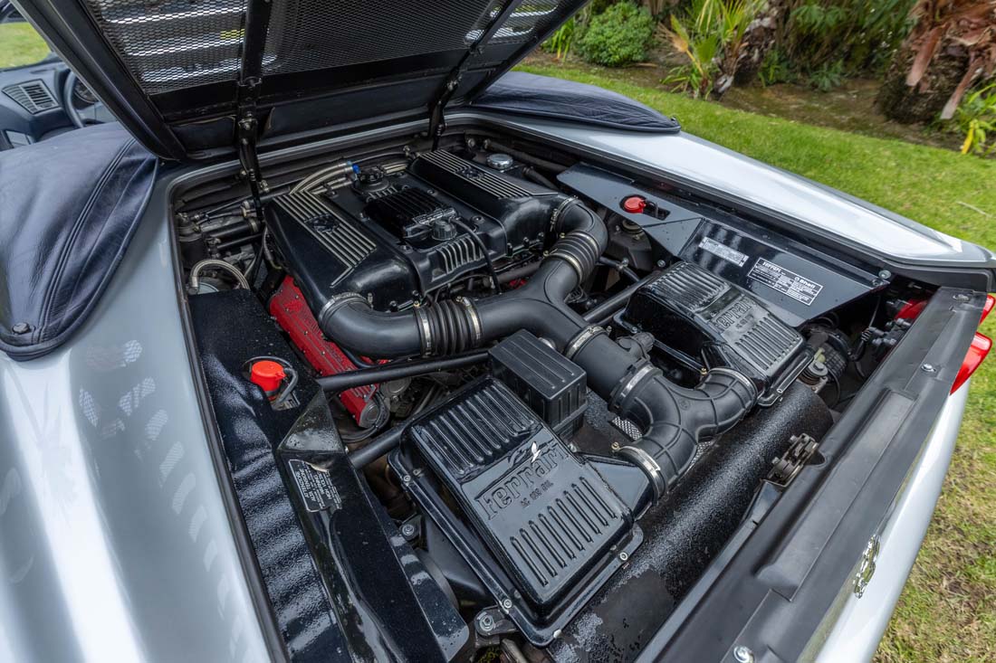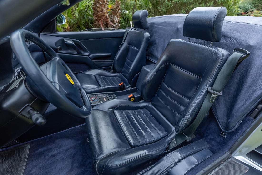 De manière générale, toutes les problématiques connues de la Ferrari F355 ont été traitées par le propriétaire actuel. Aujourd’hui, la voiture affiche 92 400 km et se présente comme une auto parfaitement prête à prendre la route et à parcourir toute distance.