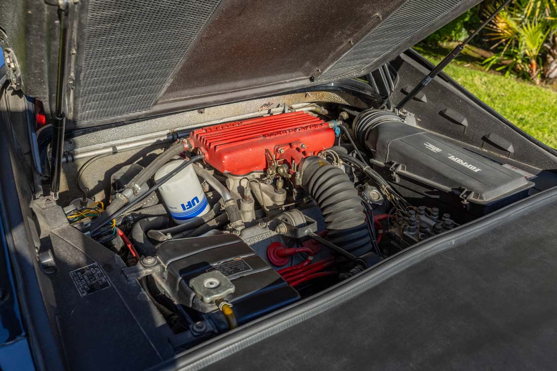 Côté moteur, on retrouve le V8 2,9L Quattrovalvole (32 soupapes) dans une configuration strictement d'origine. Avec seulement 36 192 km, la mécanique est en excellente santé. Le moteur démarre au quart de tour. La boîte de vitesses est fluide et le comportement routier reste fidèle à l'équilibre de la 308. Le véhicule est accompagné de plusieurs factures d'entretien.
