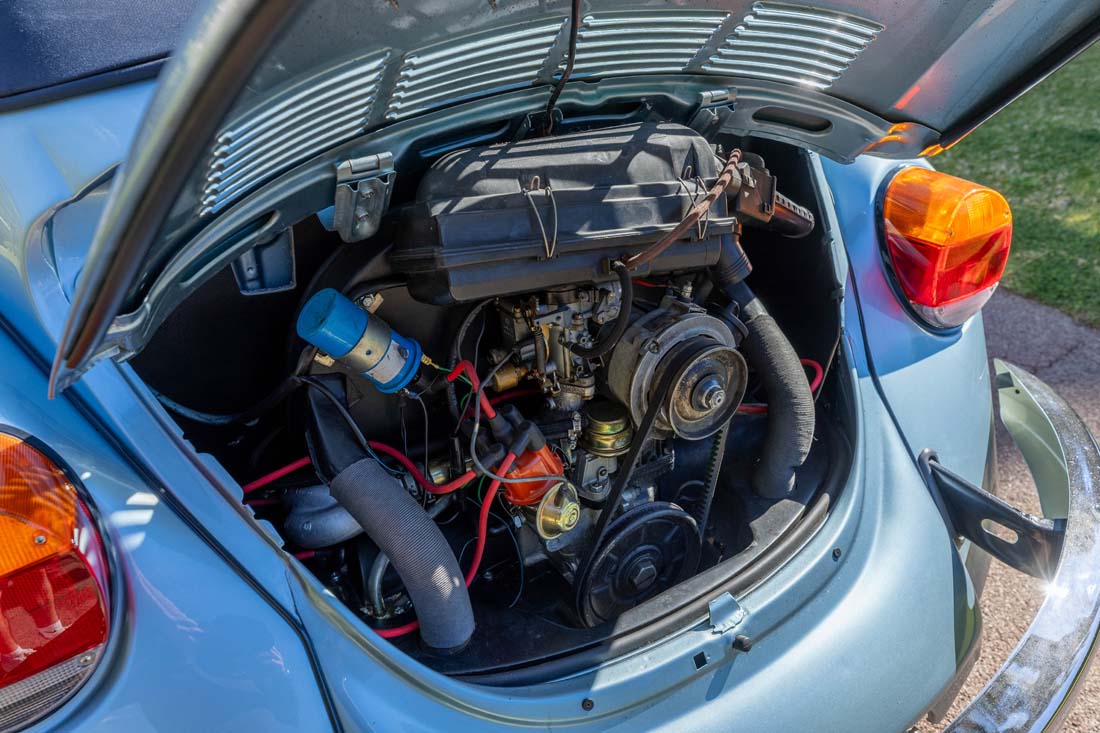 Le moteur présente un bel état. Le compartiment moteur est propre et cohérent avec l'âge du véhicule. La voiture n'ayant que très peu roulé depuis sa restauration, l'ensemble mécanique bénéficie d’un fonctionnement optimal et d’une fiabilité remarquable.