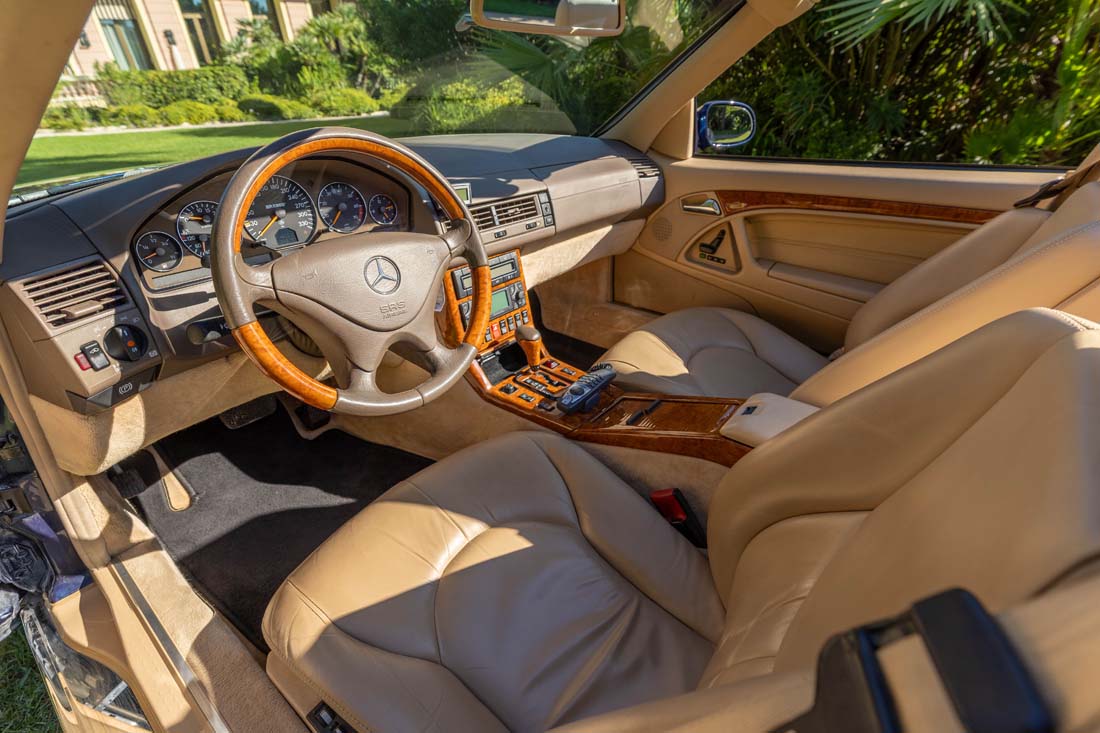 Habitacle en cuir beige irréprochable: sièges, boiseries et commutateurs, moquettes, instrumentation et équipements pleinement opérationnels.
