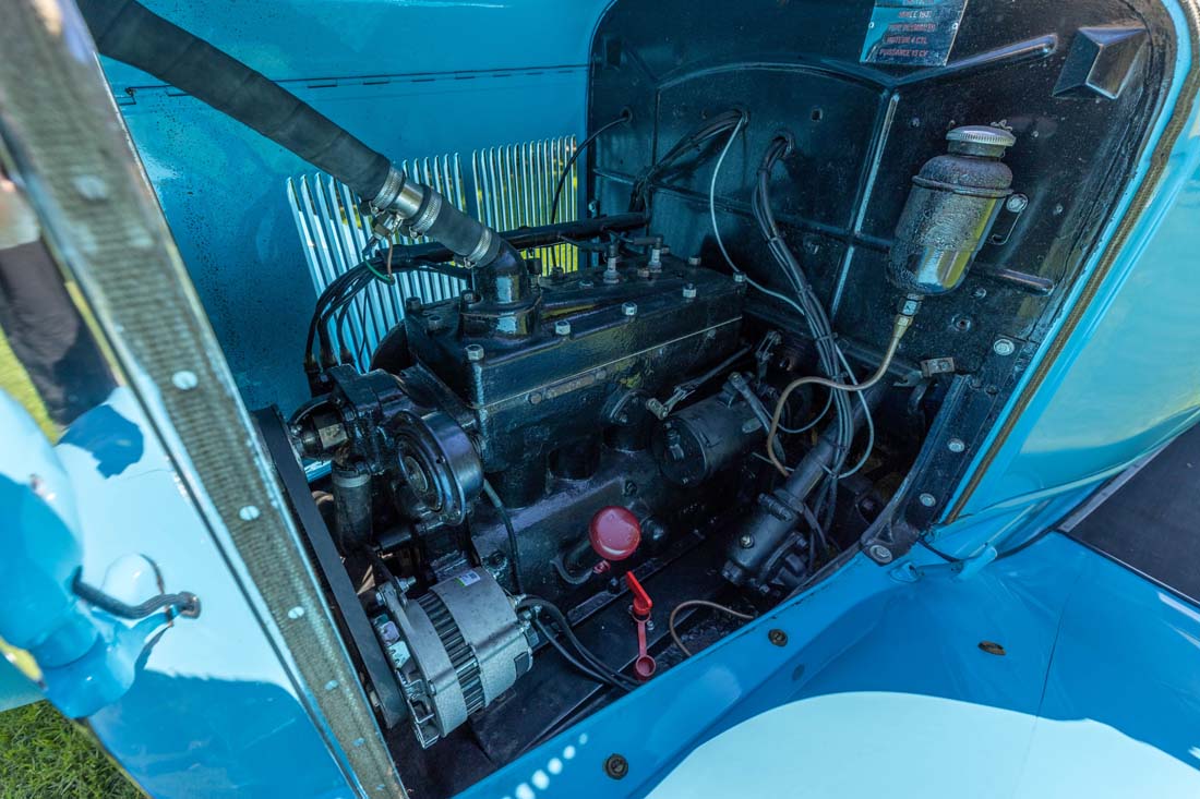 Sous le capot, la Plymouth conserve son moteur d’origine, un 4 cylindres en ligne de 3,2 litres développant 65 chevaux, parfaitement restauré et révisé. Il est à savoir que le choix à été de passer sur un système électrique en 12 volts effectuée lors de la restauration. La boîte manuelle d’origine à 3 rapports est également en parfait état de fonctionnement.