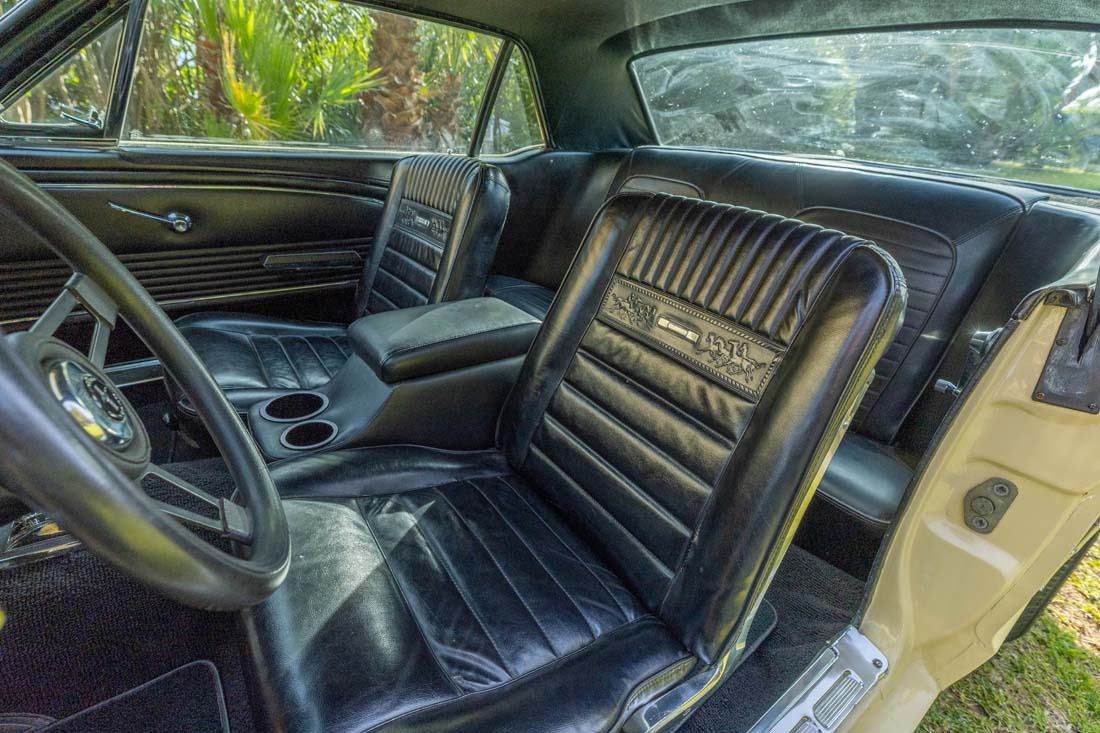 L’habitacle est particulièrement séduisant grâce à sa configuration Pony Pack. La sellerie noire est en très bel état, bien tendue, avec une présentation homogène et soignée.