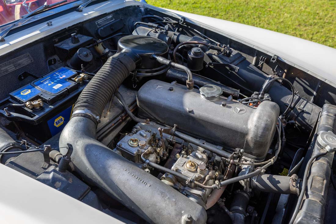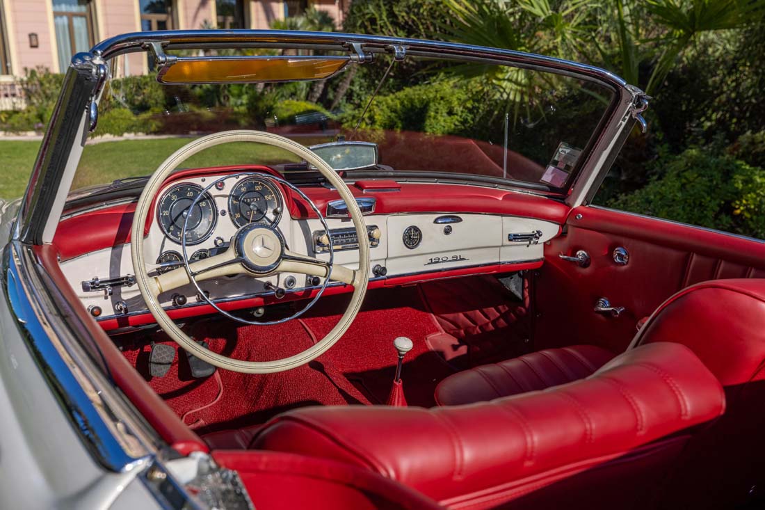 Cette 190 SL est d'origine française, de deuxième main, dans les mains du propriétaire actuel depuis 1981, un propriétaire passionné et méticuleux, qui a toujours entretenu sa voiture, comme l'atteste l'important dossier d'entretien qui suit l’auto.
